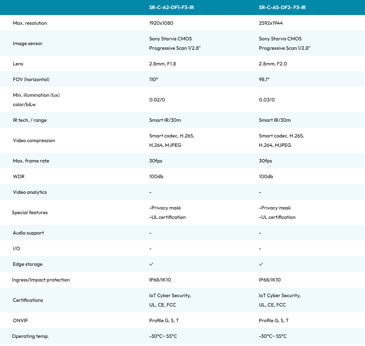 The DF models, part of Omnieye Advanced Series, are fixed-lens dome cameras equipped with a Sony Starvis Sensor and smart infrared for high-quality images in challenging conditions.