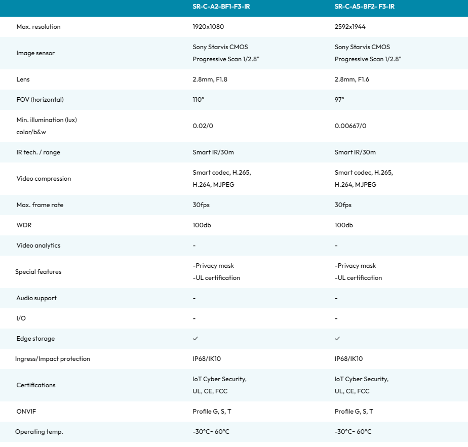 The BF models, part of the Omnieye Advanced Series, are fixed-lens bullet cameras featuring a Sony Starvis Sensor and smart infrared technology, delivering high-quality images even in challenging conditions.